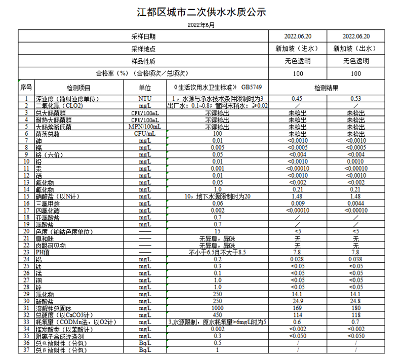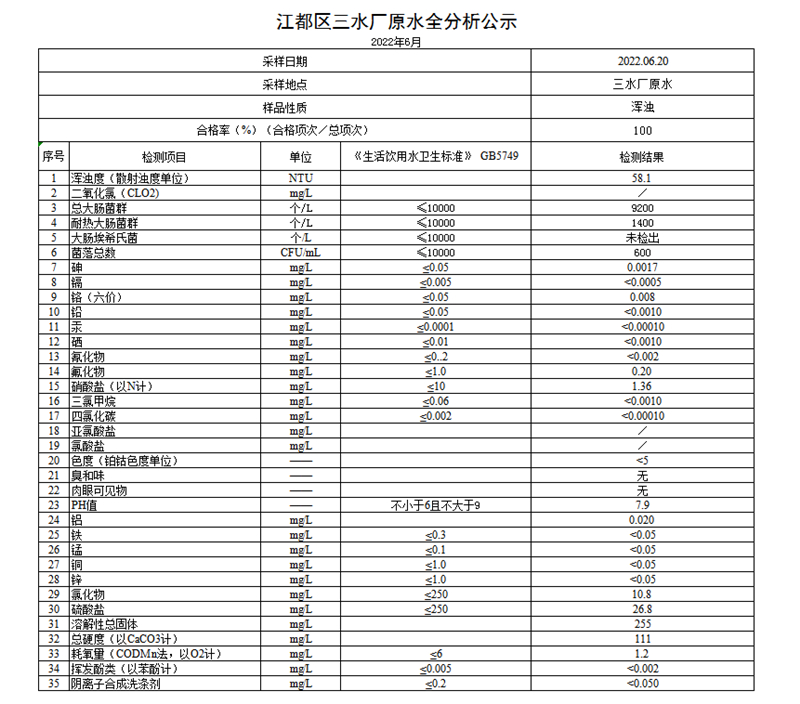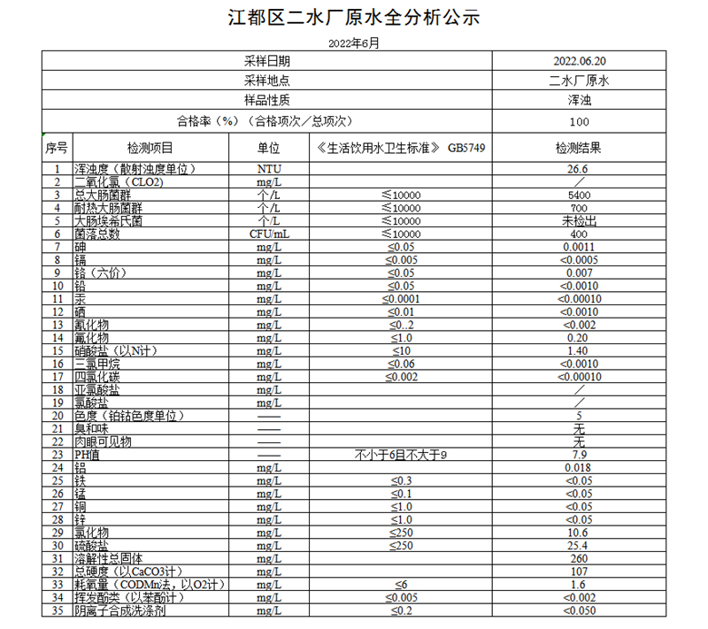 水質(zhì)公示
