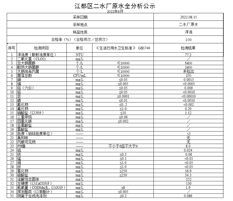 水質(zhì)公示